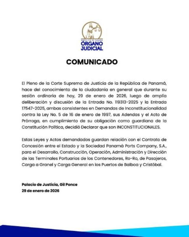 直至今年1月29日,巴拿马最高法院作出裁决,判定相关港口特许经营权合约无效。