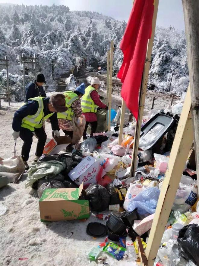 百丈岭探雪火了 清洁员每天捡垃圾上千斤来回超5小时示意图
